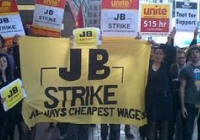 JB Hi-Fi staff at the company’s Wellington store have engaged in a series of strikes and protests as part of a campaign by the Unite union to win higher wages for retail workers. The strikes are the first at one of the company's stores in either Australia or New Zealand in over 27 years of the company's history. The Unite Union has been negotiating with JB Hi-Fi management for over six months for a collective agreement but the Australian bosses are refusing to raise wages for staff this year. -