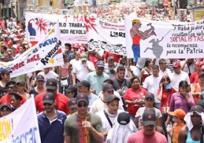 Venezuelans staged a big demonstration in Caracas on May one to mark the international workers’ day, Venezuelanalysis.com said. President Hugo Chavez also announced a 15% wage increase and broader social security entitlements. “While there were no official or police estimates, various participants in the march told Venezuelanalysis they estimated that ‘hundreds of thousands’ of people turned out, celebrating the achievements of the Bolivarian revolution and its promotion of ... better life conditions for the poor majority.” -