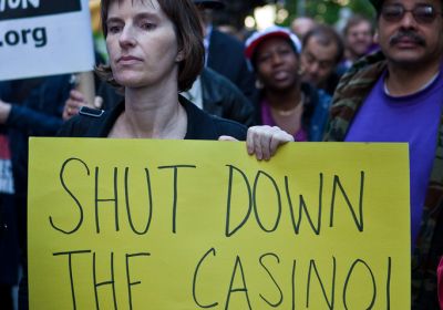 On April 29, more than 10,000 union members and others organised a protest on Wall Street in New York organised by the AFL-CIO union federation, Alternet.org said the next day. “The banners declared ‘Wall Street: Never Again’ and ‘Less Audis, More Audits’. Almost to a one, they echoed the clear policy demands of the day: regulatory reform, new taxes on banks and speculators, and a jobs bill.” -