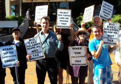 BRISBANE — On June 4, a picket of Rio Tinto Coal offices highlighted opposition to the big mining companies' scare campaign about the federal government's proposed tax on mining "super-profits”. Socialist Alliance federal election candidates condemned corporate greed and said mining tax revenue should be used to fund renewable energy programs. -