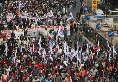 In early March, after a three-month media bombardment about the country’s economic crisis, the Greek government — backed by conservative opposition parties, the European Union (EU)and the International Monetary Fund (IMF) — announced harsh austerity measures for ordinary people. These included unprecedented salary, pension, job and public services cuts and large-scale privatisation. The government offensive entails an enormous income transfer from workers and pensioners to big business and the State Revenue Office. -