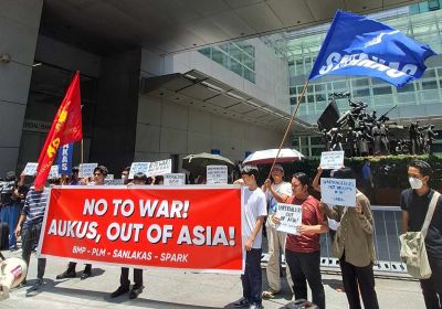 A clear anti-AUKUS message was sent to PM Anthony Albanese a day before he arrived in the Philippines for talks with President Marcos on greater militarisation in the South China Sea. Pip Hinman reports.