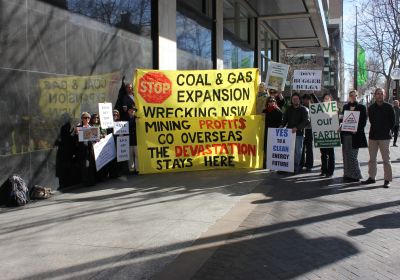 A small but vocal group of people gathered outside the Land and Environment Court in Sydney on August 20 to protest against Rio Tinto’s plans to extend its Mount Thorley Warkworth coalmine near Bulga, in Singleton Shire in the NSW Hunter Valley. The protesters held banners saying “Don’t bugger Bulga”, “Stop coal and gas destroying NSW” and “Save the Warkworth Sands Woodlands”, while they chanted slogans such as “Rack off Rio Tinto.” -