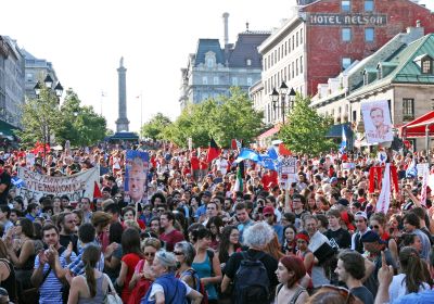 Tens of thousands of demonstrators took to Montreal's streets on August 22 for the monthly protest march of Quebec's student movement. The movement has organised big marches on the 22nd of each month since March of this year. The march was an impressive display of militancy and determination just 12 days before the September 4 provincial election. Some members of the radical Broad Coalition of the Association for Student Union Solidarity (CLASSE) student association said that 100,000 people took part. -