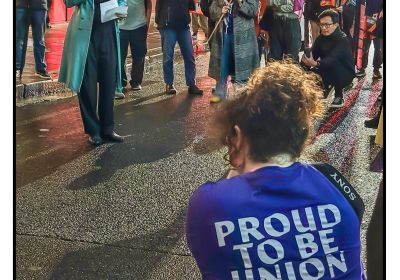 The National Tertiary Education Union, together with the Australian Services Union and the Community and Public Sector Union, among others, joined a national protest to demand that Labor impose sanctions on Israel. Pip Hinman, Jim McIlroy, Jacob Andrewartha and Markela Panegyres report.