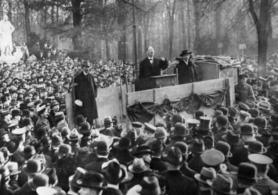Marines join protesting German workers in Berlin during the November 1918 revolution.