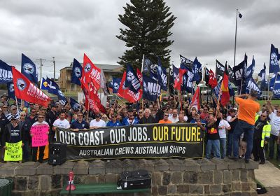 More than 400 workers from several unions, notably the CFMEU, took their fight straight to billion dollar miner Rio Tinto for its complicity in sacking Australian seafarers and replacing them with foreign workers, who are paid as little as $2 an hour.