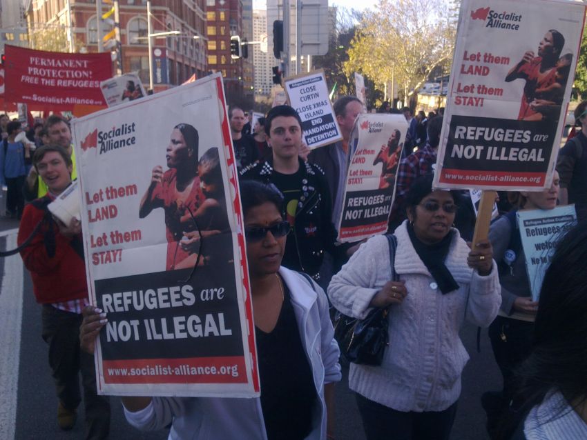 In Sydney on June 26, 1000 people marched through the streets of Sydney chanting, "Hey Julia, what do you say, let them land, let them stay". Contingents included groups from the Blue Mountains, churches and universities.