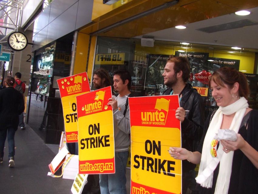Unite campaigns officer Joe Carolan said: “This is the first time that NZ workers have put up a picket line