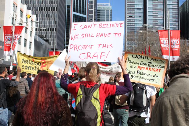 Don't let the racists be the only ones heard in this election. A pro-refugee rights demonstration took place in Sydney on August 7. Another protest is scheduled in Melbourne on August 13 at 5.30pm outside the State Library in Swanston Street.