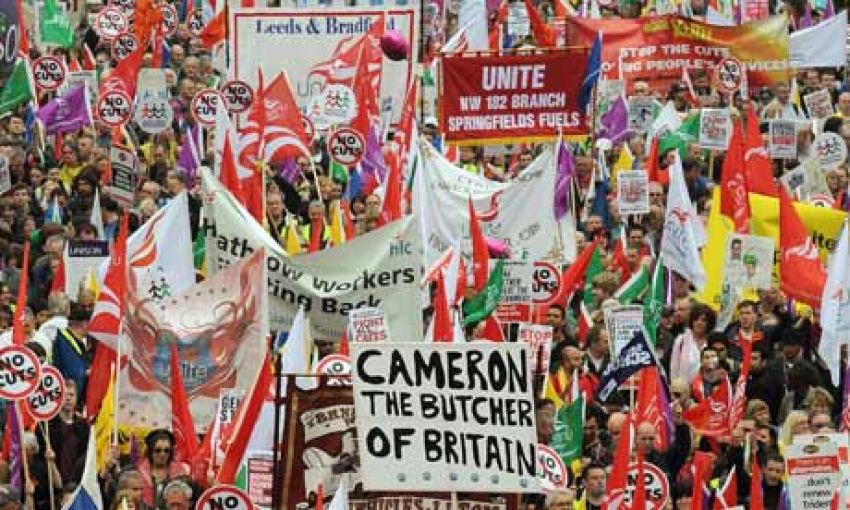 About 500,000 people marched in London on March 26 against the British government’s program of huge spending cuts.