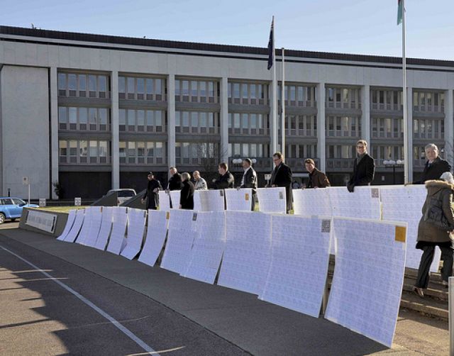 In Canberra on August 24, 60 people gathered outside one ATO building, chanted slogans and marched to another ATO building.