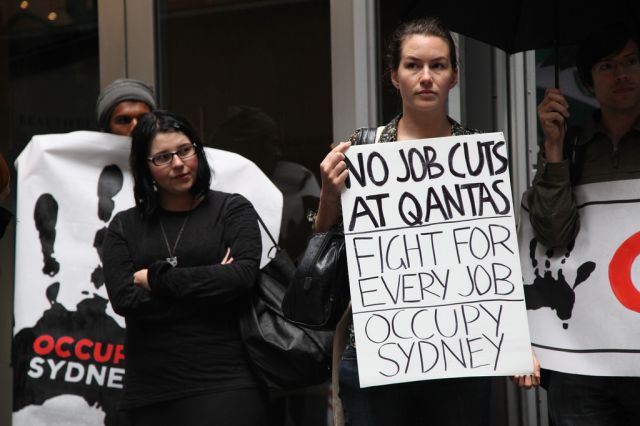 Since Occupy kicked off in Australia, the big banks have announced record profits. The CEO of Qantas awarded himself a 71% pay rise (to more than $5 million) and then shut down the national airline — a business running at hundreds of millions of dollars profit — to bully Qantas staff campaigning for a small pay rise.
