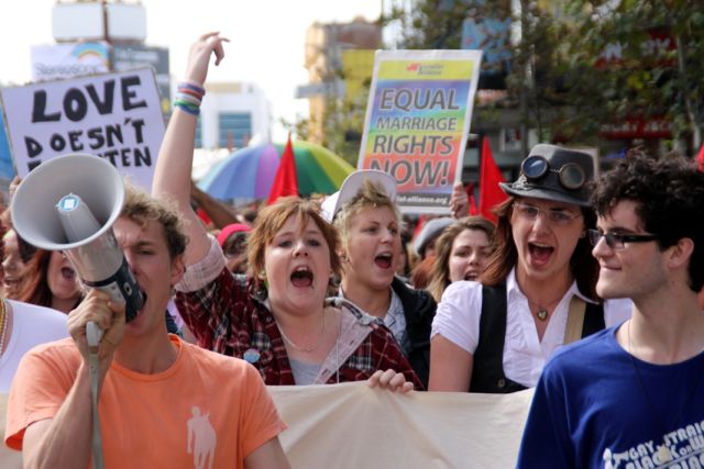 Rally in Perth demanding full marriage equality for lgbti people.
