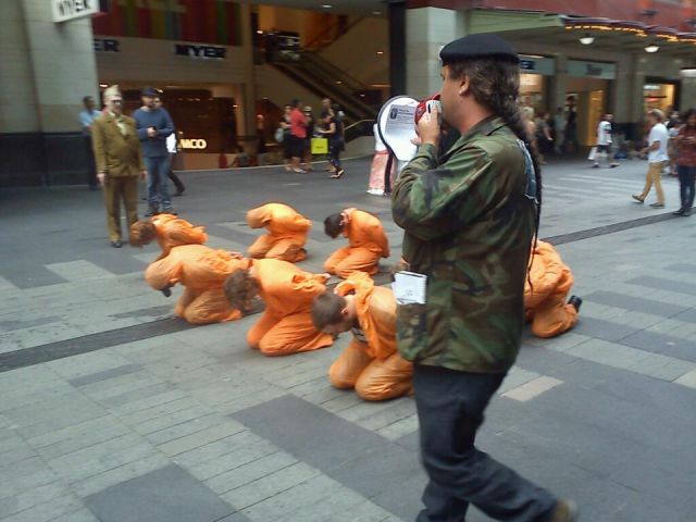 Occupy Sydney held a protest in Pitt St Mall on January 14 to call for the repeal of the US National Defense Authorisation Act. Recently signed into law, the act gives the US government the legal power to detain its citizens indefinitely without trial.
