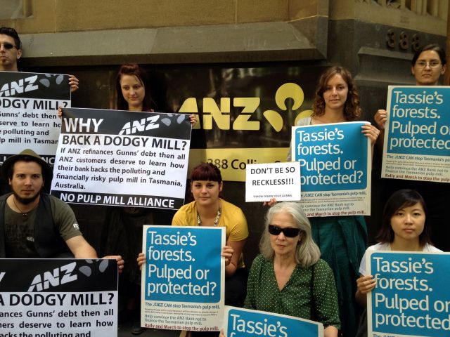 “If ANZ refinances Gunns’ debt then all ANZ customers deserve to learn how their bank backs this polluting and financially risky pulp mill,” said Anne Layton-Bennett, spokesperson for Friends of the Tamar Valley.