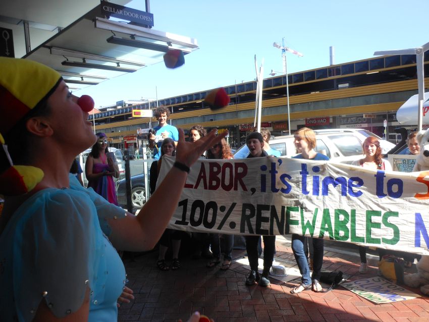 It took place in the lead up to the Labor Senate Caucus discussion about priorities - making sure renewables were on the agenda. The theme was "Stop Clowning Around Labor ― Make Our Future Your Priority". About 40 people showed up at one day's notice. Photos: Gemma Weedall.