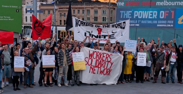 Melbourne activists gathered at Federation Square in the city centre on February 28 to voice their support for the All India General Strike. As many as 100 million workers had walked off the job in India to protest against low wages and poor working conditions in what is most likely the largest ever strike in human history.