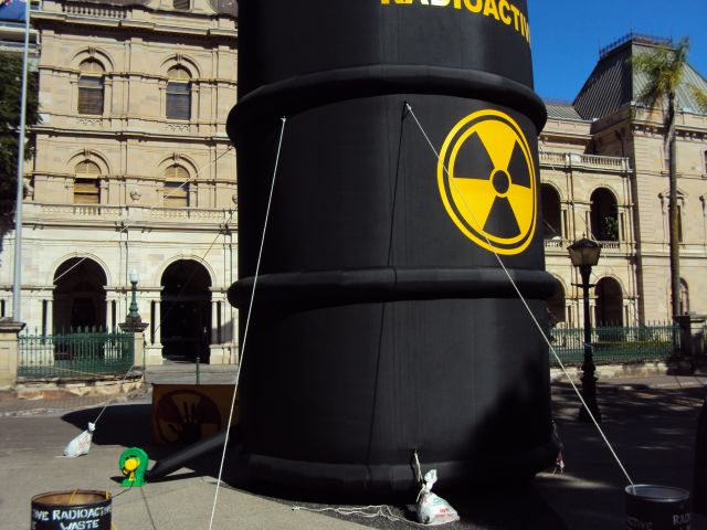 Protesters erected a giant “radioactive barrel” outside Queensland parliament on May 15, the first session under the new Liberal National Party (LNP) state government. The protest, sponsored by Friends of the Earth Brisbane’s Peace Anti-Nuclear and Clean Energy Collective (PACE), was held to oppose a push for uranium mining in Queensland, banned under the previous Labor government.