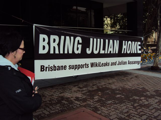 The rallies, organised by Brisbane WikiLeaks Defence, were held outside the Department of Foreign Affairs and Trade (DFAT) office in the city at lunchtime and in the afternoon peak hour.