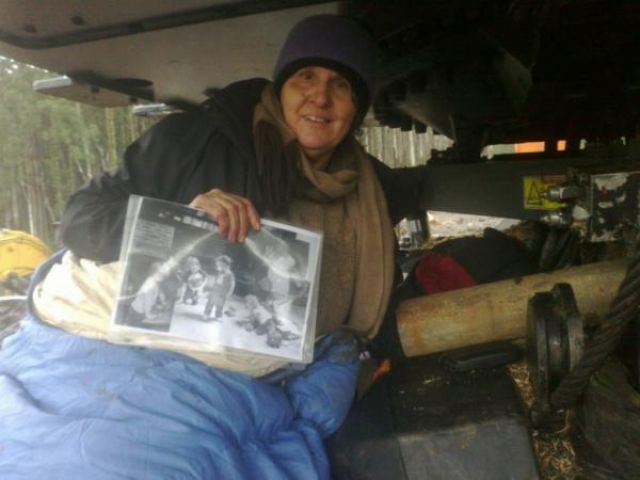 Toolangi grandmothers, fed up with being kept awake at all hours by the sound of chainsaws, dozers and log trucks, have chained themselves to the bulldozers in a logging coupe on the slopes of Mount St Leonard.