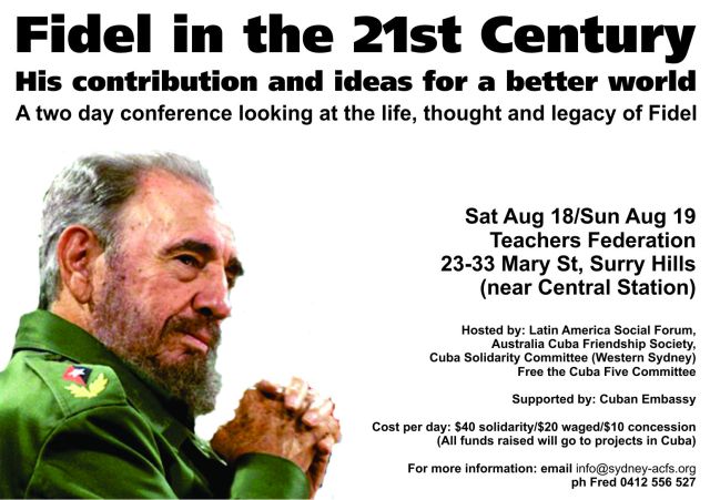 Cuba solidarity activists, members of Australia’s Latin American community and leftists from around the country will take part in a two-day conference in Sydney to pay homage to Cuban revolutionary Fidel Castro.