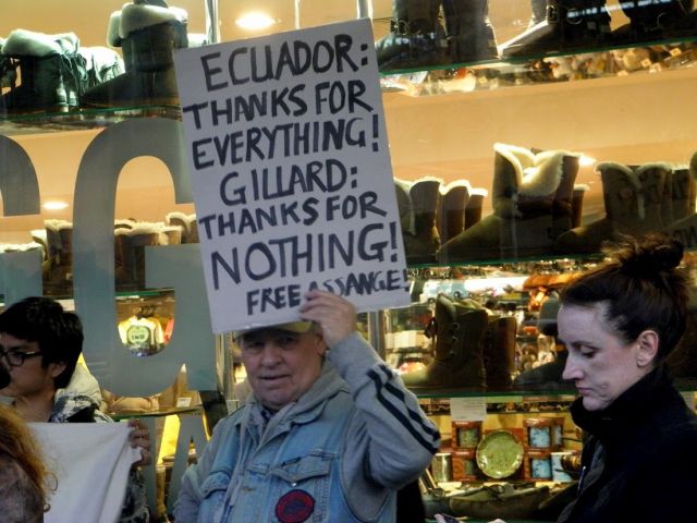 As much as we need to counter the black propaganda from overseas, our target has to be the liars in the ALP administration and the Australian-based media. Prime Minister Julia Gillard opened the lying with the allegation that Assangehad engaged in criminal activities by releasing “top secret” material. Since the Federal Police blew that charge out of the water, she has taken refuge in the claim that Australia cannot “interfere” in legal processes elsewhere. That line is hard to square with interventions in Indonesia over drug traffickers and in Libya on behalf of a war crimes lawyer.