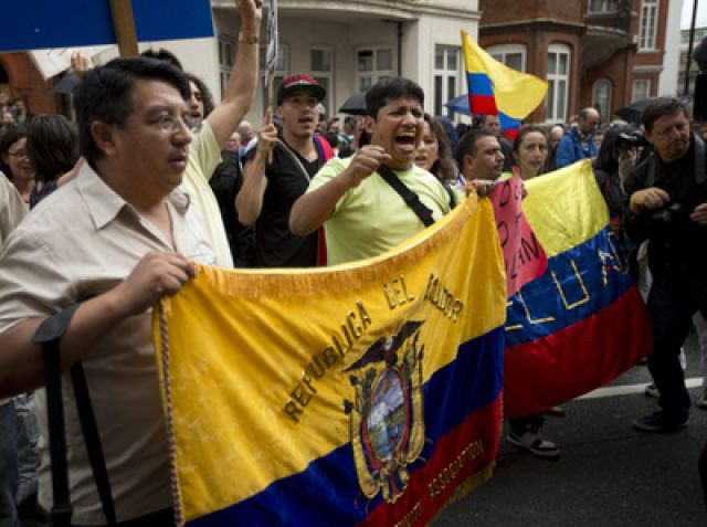 It came after British police gathered outside the Ecuadorean embassy in London, where Assange has been staying for two months since he first requested asylum. Ecuador said Britain had threatened to remove its embassy's diplomatic status and raid the building to arrest Assange -- a move that would have been an unprecedented violation of international law and diplomatic norms.