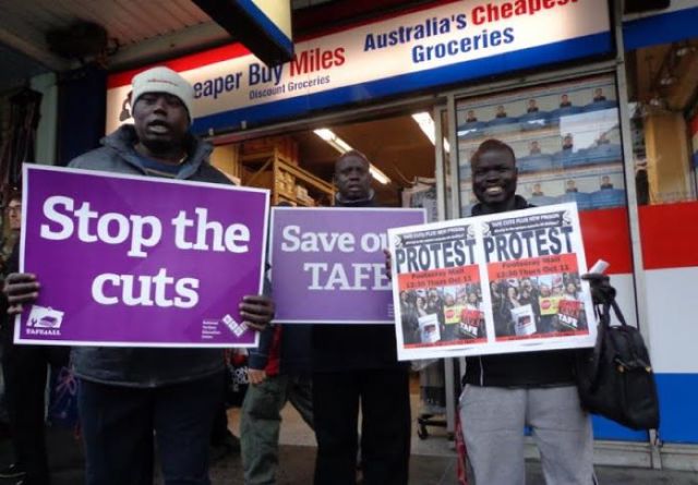Peter Mum, a former TAFE student and refugee from Sudan, told the rally about his difficult journey to be enrolled in a Bachelor of Youth Work, his “dream course”. He said: “I didn’t do too well at high school and TAFE helped me develop my English skills and generally to communicate well.