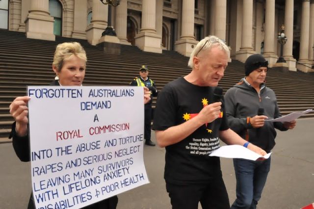 Members of the Forgotten Australians rallied in Melbourne on October 13 to demand a Royal Commission into the sexual abuse, emotional and criminal assault, and torture of children in church and government-run homes, orphanages and foster care homes. The term Forgotten Australian refers to children who were placed in care outside of their family home during the 20th century.