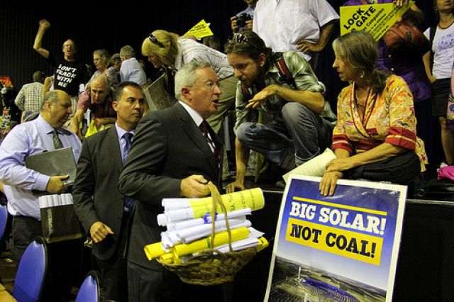 The community did have some strategies in place: within the first 10 minutes they had successfully gained control of the mikes and delivered them to local indigenous descendants who damned the politicians in no uncertain terms. This was followed by the delivery of scores of gasfield-free road declarations from communities all over the region. Then the questions flowed. Intelligent, penetrating questions from scientists, farmers, business people and ordinary folk of all kinds.