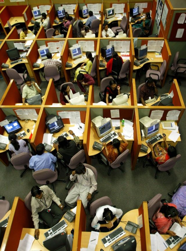 Call centres are similar to factories in the way that workers are under the command of a “hierarchy of officers and sergeants” (managers and team leaders), and are “enslaved by the machine” (automated monitoring of what the worker is doing every minute of the working day).