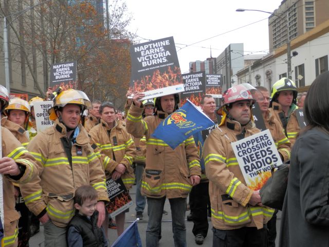 One thousand firefighters from around Victoria descended on parliament house on July 1 to protest Premier Denis Napthine’s cuts to the fire services budget.