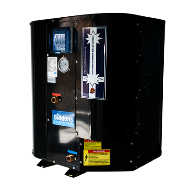 The solar heat pump uses reverse-application technology commonly found in fridges. It absorbs and extracts solar heat from the air using a built-in electrical fan. The unit contains a refrigerant that boils at -26°C. This means that at any air temperature hotter than this, the refrigerant liquid becomes a gas, which can be compressed.