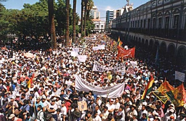 With the people in the city of Cochabamba rising up against water privatisation and coca-growers in the Chapare blockading roads, the CSUTCB unleashed a wave of struggle that threatened to bring down the government of Hugo Banzer.