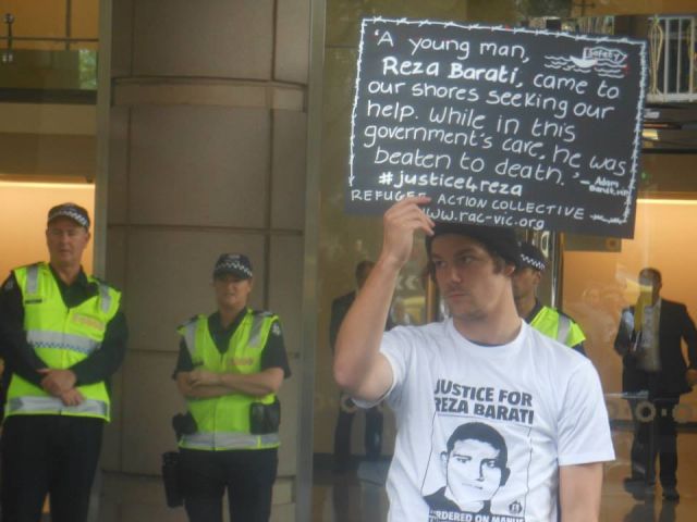 Chris Breen from the Refugee Action Collective pointed out that those responsible for the murder are still employed at the detention centre by Transfield.
