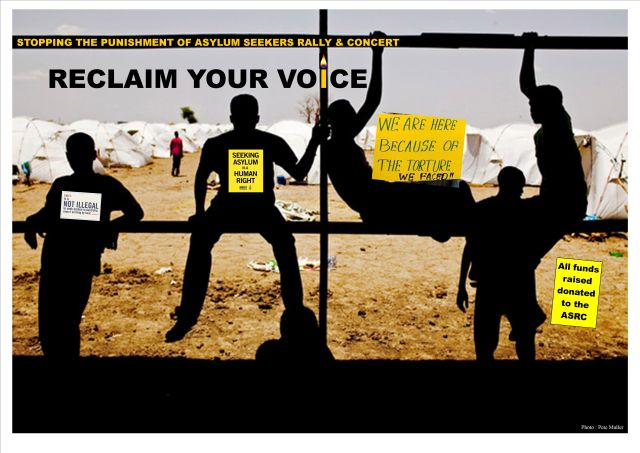 As a citizen of this great land, I continued to feel a deep sense of despair and sorrow about what we were doing to these people. I decided to do the only thing I felt capable of doing to try and change my sense of hopelessness and helplessness about all this. I went onto Facebook and created an event page called "Reclaim Your Voice: Stopping The Punishment of Asylum Seekers". I wanted to "reclaim my voice". I felt muted and choked by what appeared to be the weight of public opinion against, and political commitment to stop, people coming to us by boat to ask us for refuge.