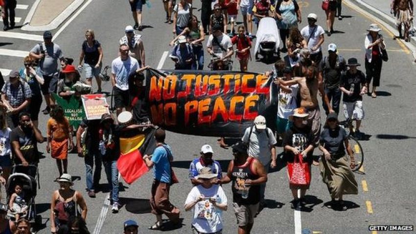 "Aboriginal activist Callum Clay Dixon said 'What is Australia? It is a colonial state based on genocide and dispossession... The Australian flag remains drenched in the blood of our ancestors. We're not here about civil rights and equal rights, the coloniser has never been civil or right. We're here for human rights' "