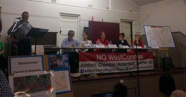 The standing-room-only meeting to discuss the proposed WestConnex tunnel through the area heard from Labor, Greens and Socialist Alliance candidates for the state seat of Summer Hill in the state election in March. Liberal candidate Julie Passas sent an apology, claiming a prior commitment.
