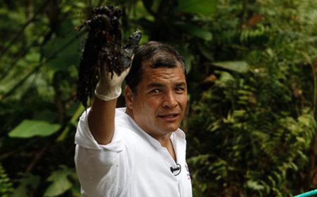 Recently, Ecuadoran President Rafael Correa put his hand into one of these hidden pools and brought it out covered in oil muck. Toxic waste is still polluting the groundwater, the rainforest and the atmosphere.