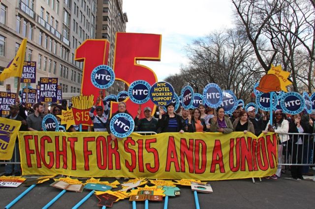 It said as well as a $15 minimum wage, the campaign, spearheaded by the Service Employees International Union (SEIU), is also demanding the right of low-wage workers in industries such as fast food to organise in unions.