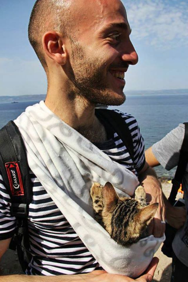 It is a long and perilous journey for those fleeing war-torn Syria in hopes of reaching safety. But one such refugee refused to make journey without his cat.