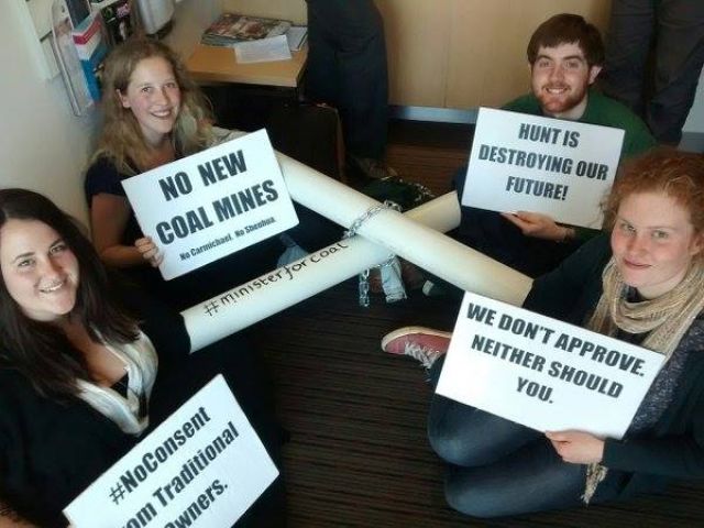 Protesters occupied environment minister Greg Hunt's office in Melbourne on October 30, in protest at his re-approval of Australia's largest new mega coalmine — the Adani-Carmichael mine in Queensland.
