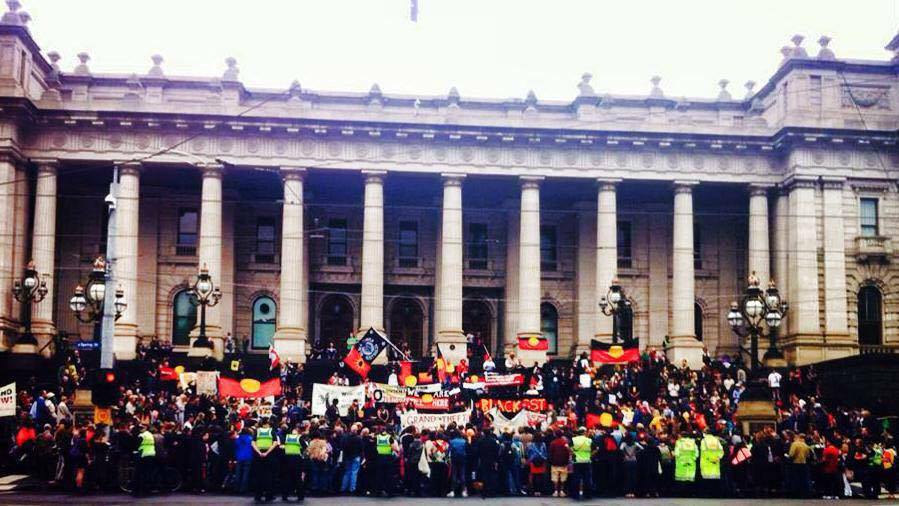 Assemble at Pastor Douglas and Gladys Nichols statue @ 10:00am for smoking ceremony with respect to all Kulin Nations custodians. Bring flowers to lay on the steps of parliament to remember our ancestors and get ready to let the country know it is time for justice, treaty and sovereignty.