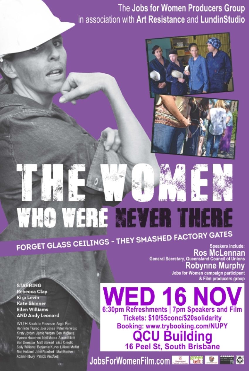 Brisbane's premiere of the short cinematic film on a determined group of women who fought for work at the male-dominated Port Kembla steelworks in 1973. They laid the groundwork for the 1980s 'Jobs For Women' campaign that followed.