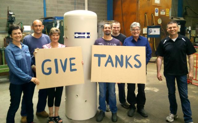 The Give Tanks initiative, being run in partnership with Australia's first worker-owned green technology manufacturing cooperative, Eureka's Future, has been devised as a tangible way to help those excluded from the benefits of government subsidies for home energy-efficiency measures, reduce carbon emissions and support local jobs in manufacturing.