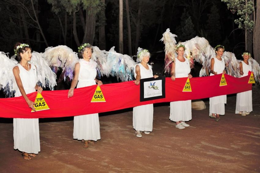 The “angels”, all aged over 50, are part of the Climate Guardians, a group of anti-coal seam gas (CSG) activists who dress as angles to create awareness of the need to keep fossil fuels in the ground.