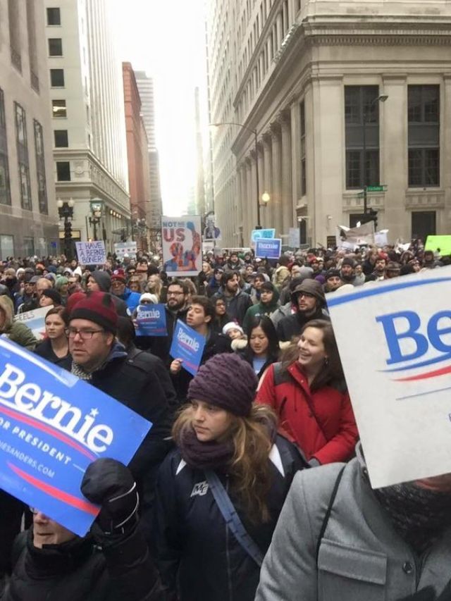 Ahead of the March 1 "Super Tuesday" primaries, nationwide marches has swept across the Untied States in support of Democratic candidate Bernie Sanders on February 28, US Uncut said that day.