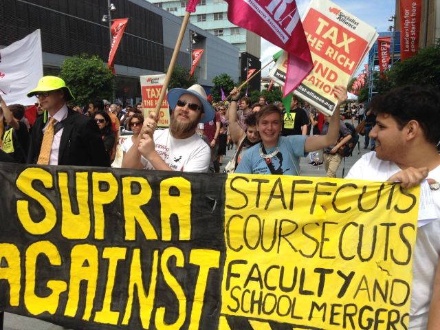 Members of the National Tertiary Education Union and the Education Action Group at the University of Sydney rallied on March 16 against the university's proposed cuts to faculties and degrees.
