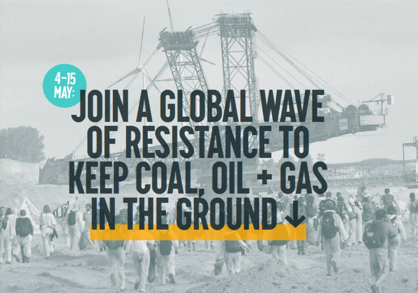 From May 4 to 16 a global wave of mass community direct action will target the world's most dangerous fossil fuel projects with a clear message: keep them in the ground and speed up the transition to 100% renewable energy.
